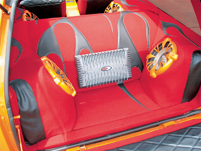 Stereo Alpine head unit / Rockford Fosgate Punch 1,800-watt amplifier / Kicker 10-inch subwoofers / Kicker 6-1/2-inch midrange speakers